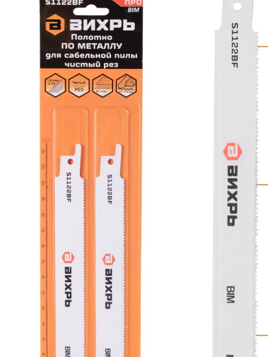 Полотно для сабельной пилы 225мм по металлу S1122BF (2 шт) Вихрь