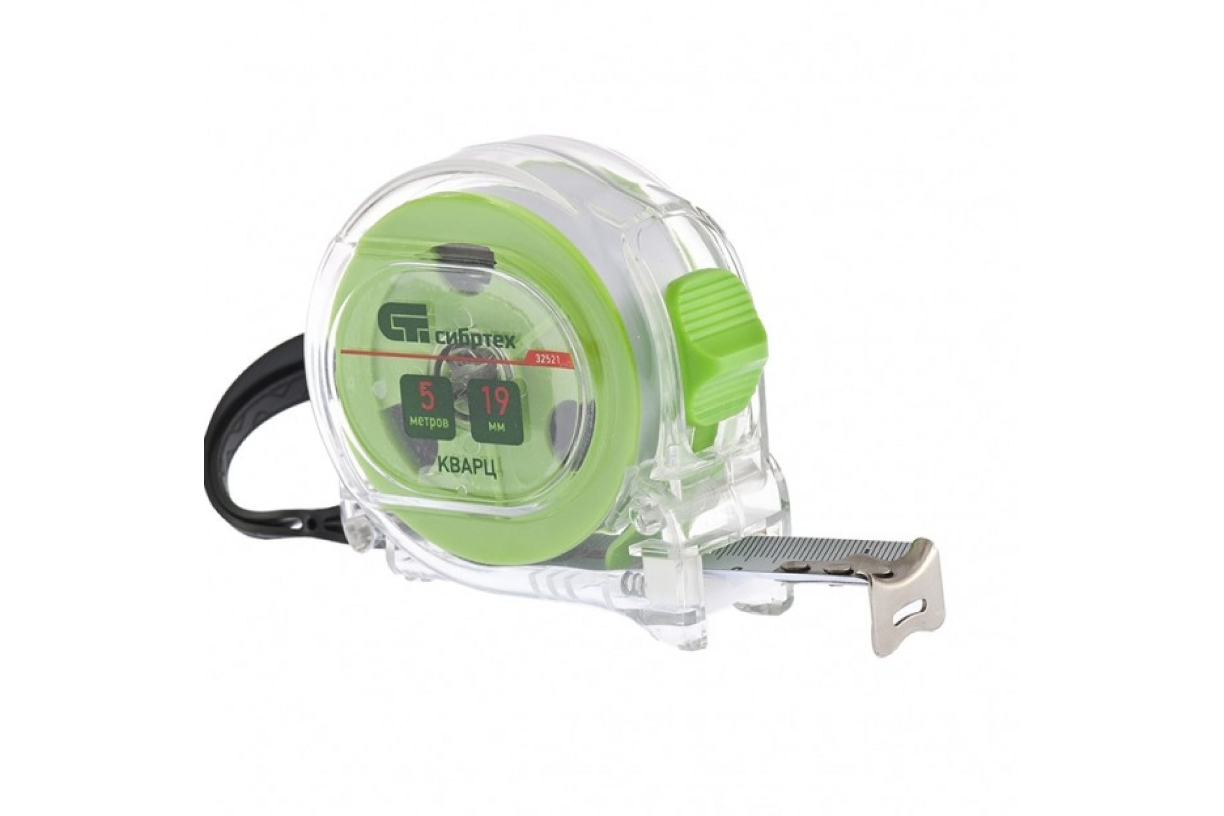 Рулетка 5м*19мм прозрачный корпус амортизатор СИБРТЕХ Кварц 32521