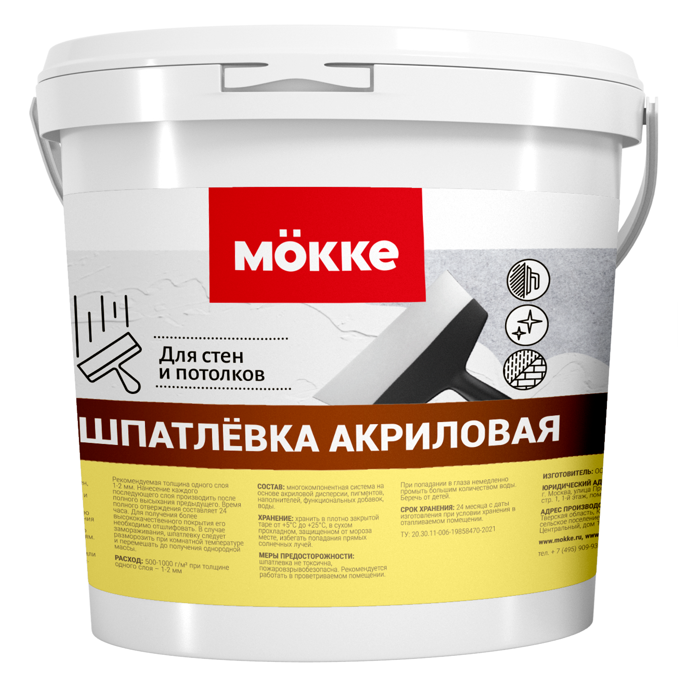 Шпатлевка акриловая для стен и потолков MOKKE 1кг