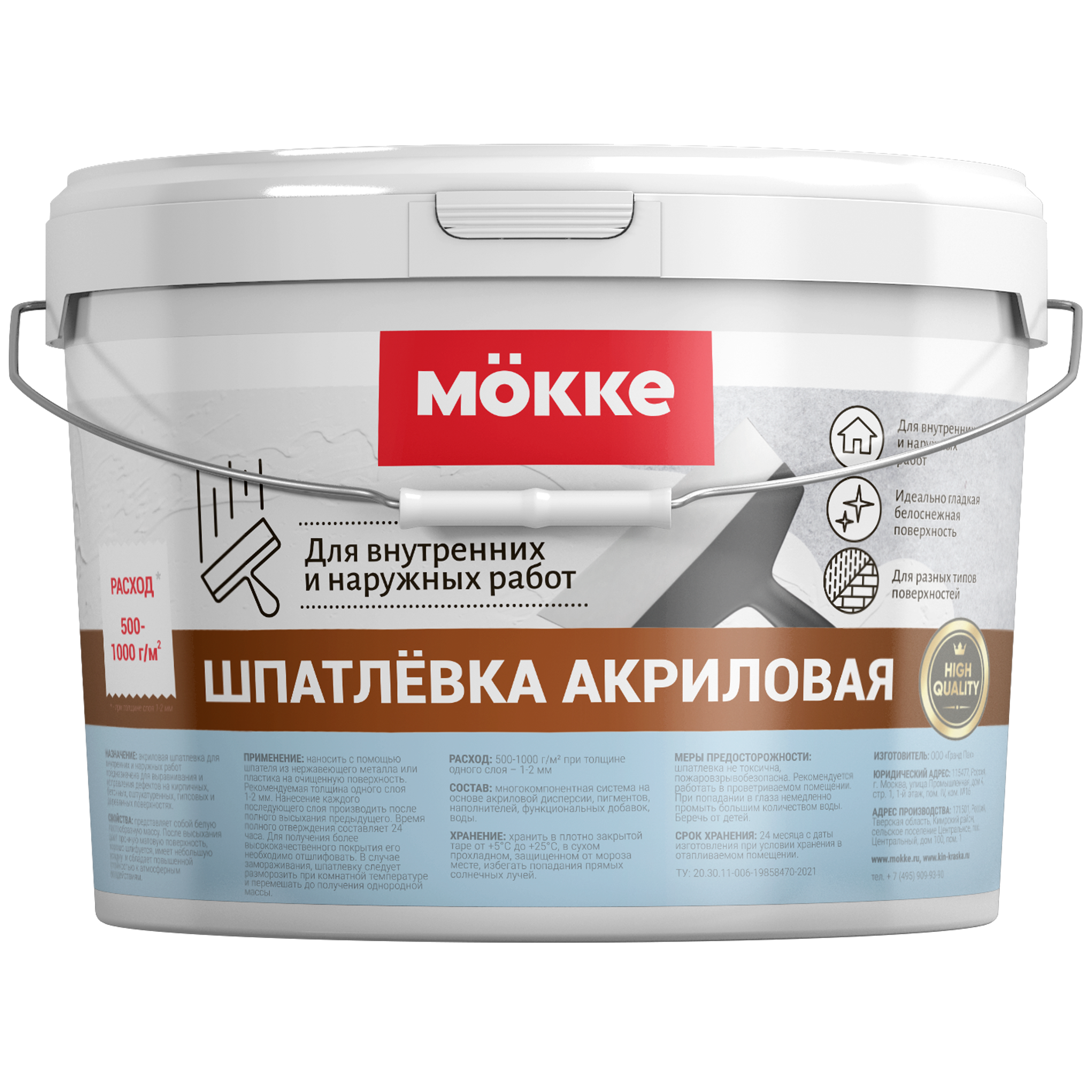 Шпатлевка акриловая для внутренних и наружных работ MOKKE 1кг